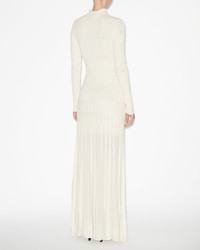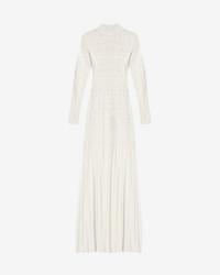 Plain-colored fine crepe knit dress Stand-up collar Long sleeves Openwork knit top Pleated mesh skirt Long fitted cut with a flared skirt Style: RO0741FAC1L01I23EC GISOLE 46% cotton, 42% viscose, 10% polyamide, 2% elastane