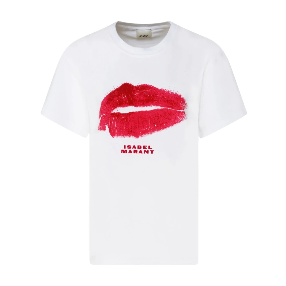 Elevate your casual look with this Isabel Marant White Cotton Graphic Print T-Shirt. Featuring a red graphic print and logo on the front, crew neck, short sleeves, and a straight hem. Regular fit for a comfortable wear. Designer color: White Designer ID: TS0123FA-A3N54I20WH Material & Care 100% Cotton