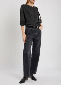 Info & Care Isabel Marant knit jumper V-neck, dropped shoulders, detachable brooch at gathered front Slips on 70% viscose, 30% wool Hand wash Size & Fit Length shoulder to hem: 28 inches/ 71cm Midweight Relaxed fit Model is 5'9"/ 175cm and wears a size;FR36