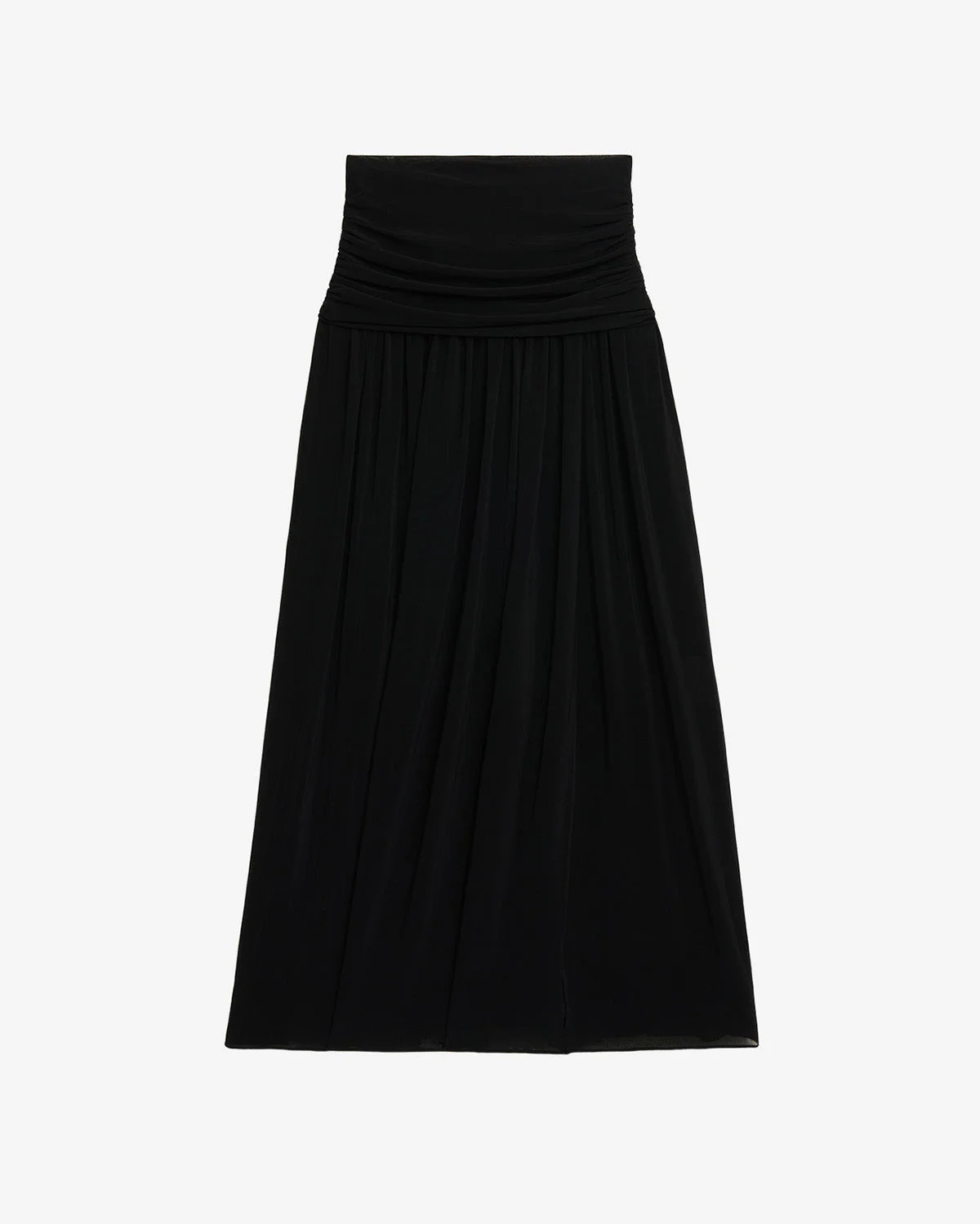 Long gathered jersey skirt Wide gathered waistband Done up on the side with a hook and a hidden zipper Asymmetrical hem Flared and flowing Style: JU0395FAC3K05I01BK GWENDY 92% viscose, 8% elastane