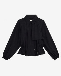 Short jacket in satiny technical fabric Shirt collar Snap-fastened crossover front Long raglan sleeves Tapered elasticated cuffs Bib style front and back Fitted waist with drawstring Style: VE0514FAC2G01I01BK GWENOLA 65% tencel, 35% nylon