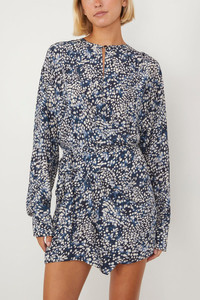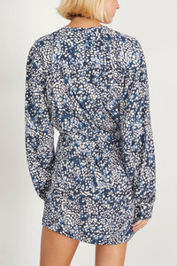 Habla Floral Asymmetric Long Sleeve Wrap Dress in Midnight/White