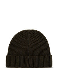 ribbed logo beanie hat Highlights - Brown - Ribbed knit - Logo patch - Wool - Turn-up brim Imported Composition Wool 100%