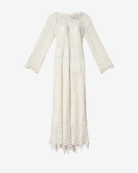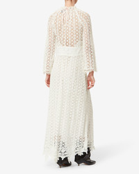 Long romantic cotton guipure dress Round neckline Long raglan sleeves Teardrop-shaped opening in back with tie ribbon Hidden zipper on the left side Lining with silk crepe slip See-through look Guipure lace trim details Fitted Style: RO1045FAD1J02I20WH HARYA 100% cotton Care & Sustainability Dry clean only For more details, see the instructions on the composition label the history and environmental impact of this product