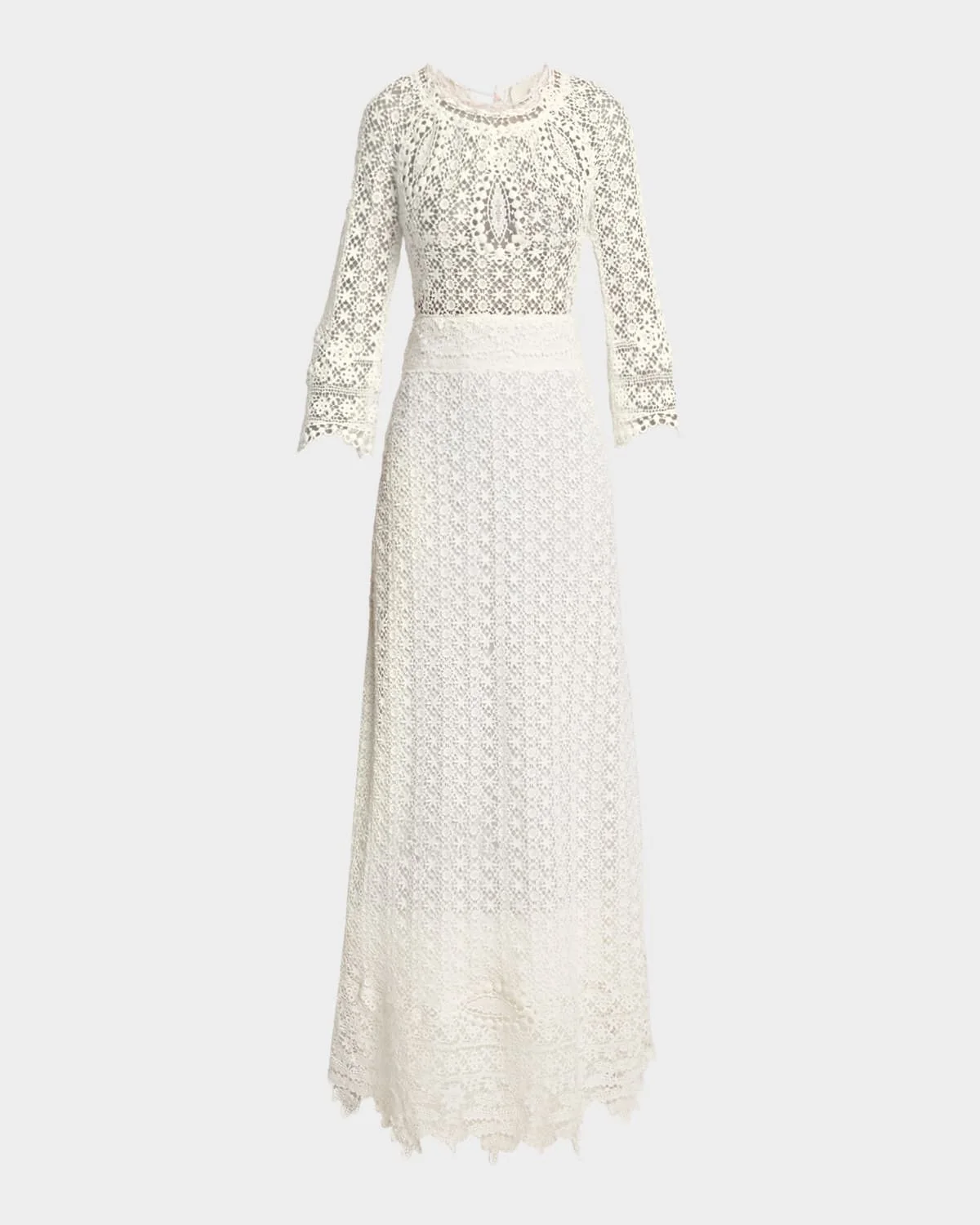 Hayra Guipure Lace Long-Sleeve Maxi Dress