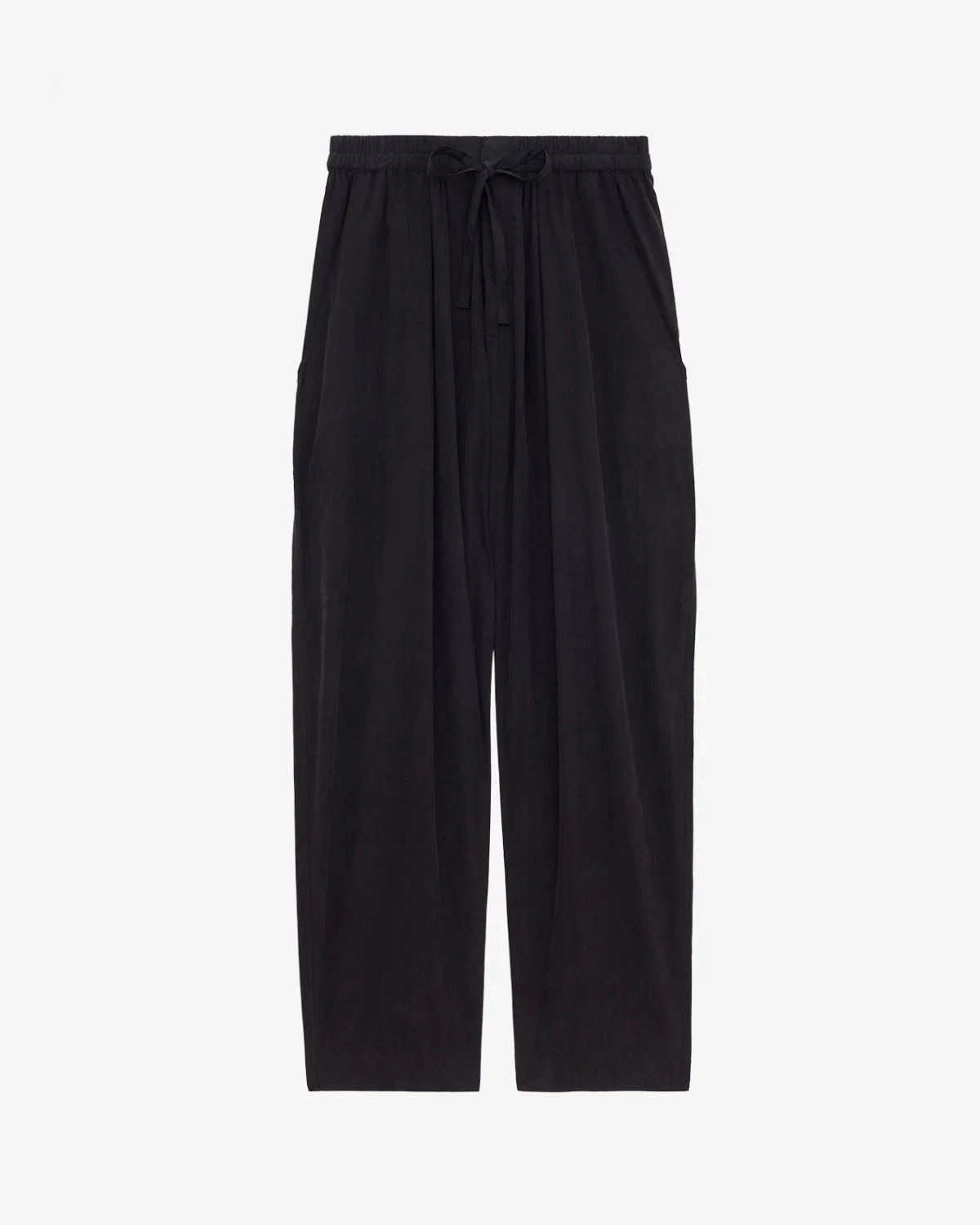 Gathered technical fabric pants Elastic waist with drawstring Snap-fastened and zippered Italian pockets on the sides Pockets in back Relaxed fit Style: PA0577FCC2G01I01BK HECTORINA 65% tencel, 35% nylon
