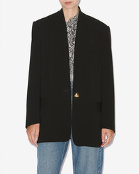 Flowing acetate suit jacket Collarless Long sleeves Straight buttoned cuffs Chest pocket Flap pockets on the sides Buttoned front Twill lining Inside pocket Relaxed fit Style: VE0466FAC1F01I01BK HELONA 70% acetate, 30% polyester