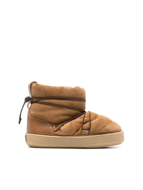 Heta rain boots Highlights - Black - Lambskin - Smooth grain - Padded design - Drawstring fastening - Pull-tab at the heel - Round toe - Branded insole - Full lining - Ankle-length - Logo-patch at the sole - Flat rubber sole - This piece comes complete with a protective dust bag. Imported Composition Leather 100% SIZE & FIT Measurement CIRCUMFERENCE 15.35 in(39 cm) HEEL 1.18 in(3 cm) HEIGHT 5.51 in(14 cm) Sole height 1.18 in(3 cm)