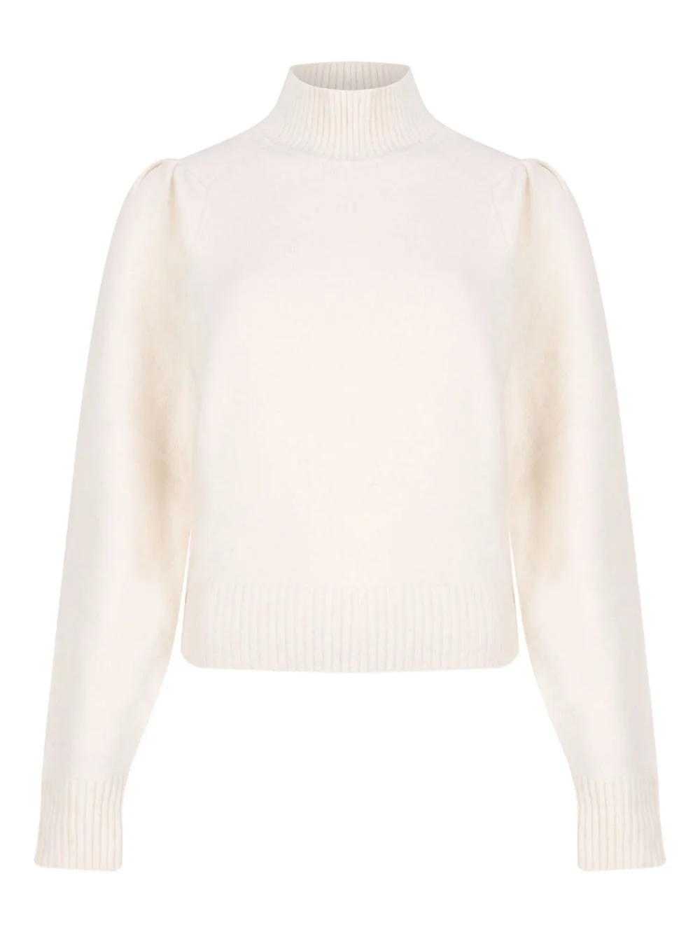high-neck puff-sleeve sweater Highlights - Off-white - High neck - Puff sleeves - Ribbed cuffs - Ribbed hem Imported Composition Alpaca 62%, Polyamide 33%, Elastane 5% Washing instructions Read Manufacturer Guidelines