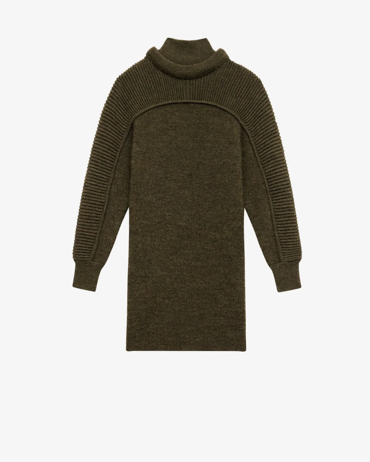 Short dress in plain-colored ribbed wool Double collar Stand-up collar Round padded trompe-l'oeil neckline Long sleeves Embossed ribs on the top and sleeves Ribbed finishes Fitted cut 100% wool
