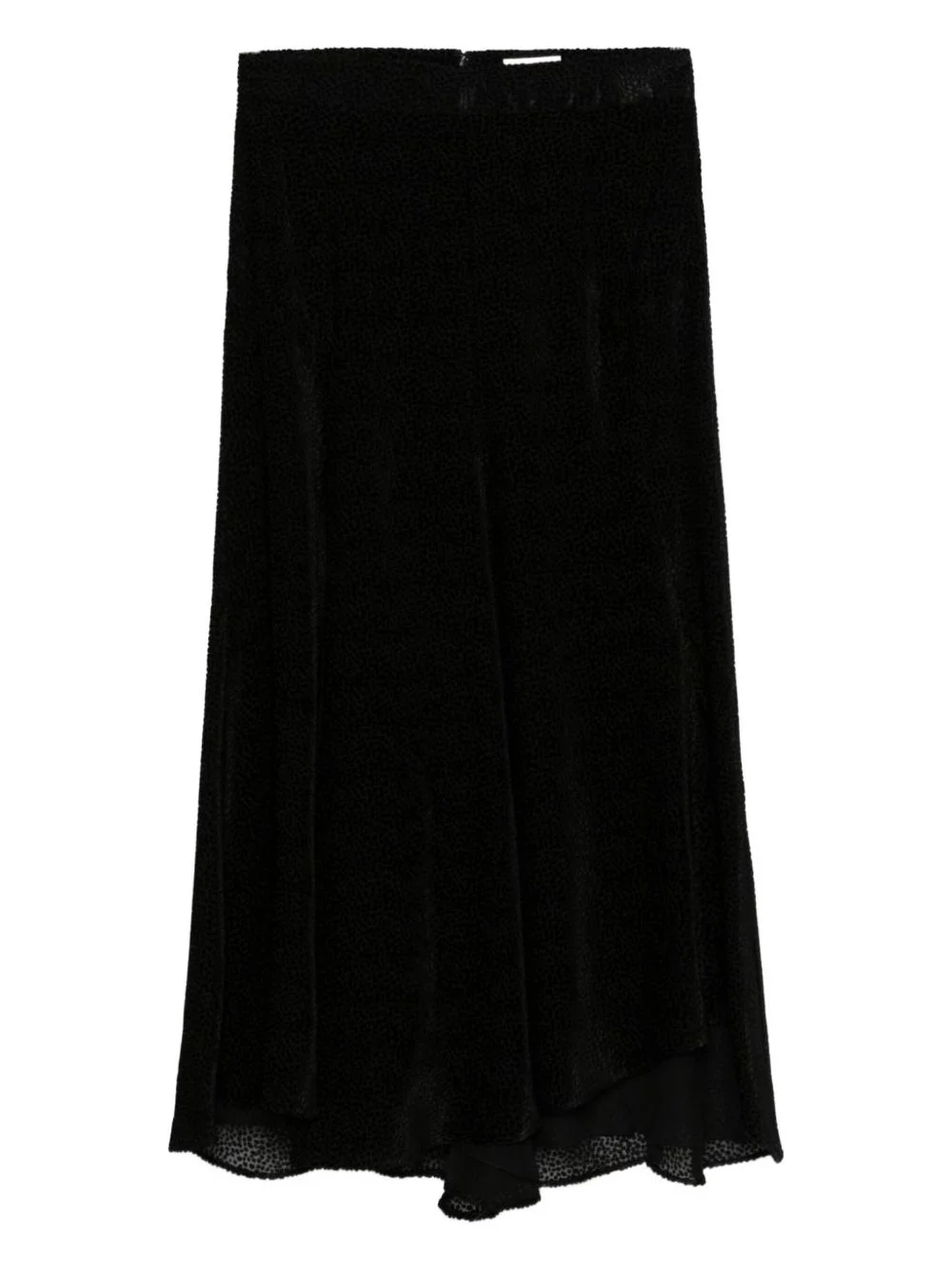 Hortensia midi skirt Highlights - Black - Silk blend - Flocked finish - Abstract pattern print - Concealed rear hook and zip fastening - Flared skirt - Asymmetric hem - Full lining - Mid-calf length Imported Composition Outer: Silk 78%, Viscose 22% Lining: Silk 100% SIZE & FIT FittingInformation This midi-length skirt is intended to be worn high on the waist Made from a midweight non-stretch fabric