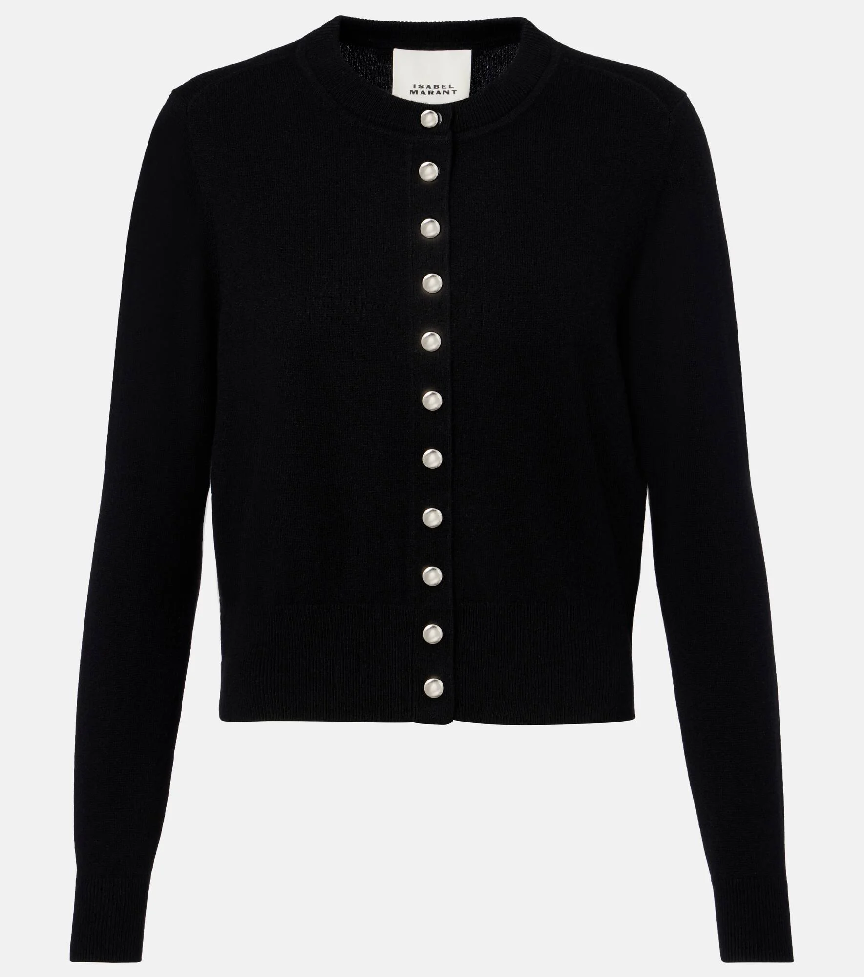 Inspired by Parisian style, each Isabel Marant piece blends refined design with effortless looks for daily life. The Idesia cardigan is thoughtfully crafted from wool and cashmere into a slim-fit silhouette. Product Details - Material: 70% wool (merino wool), 30% cashmere - Care instructions: hand wash - Made in China - Designer color name: Black - Item color: black - Hardware color: silver - Cuff: ribbed - Hem: ribbed - Closure: snap-buttoned front - Item number: P01095428 Size & Fit - True to size - Straight fit - Stretchy fabric - Slightly cropped - The model seen in the picture is 178cm-5'10" and wearing a size FR 36