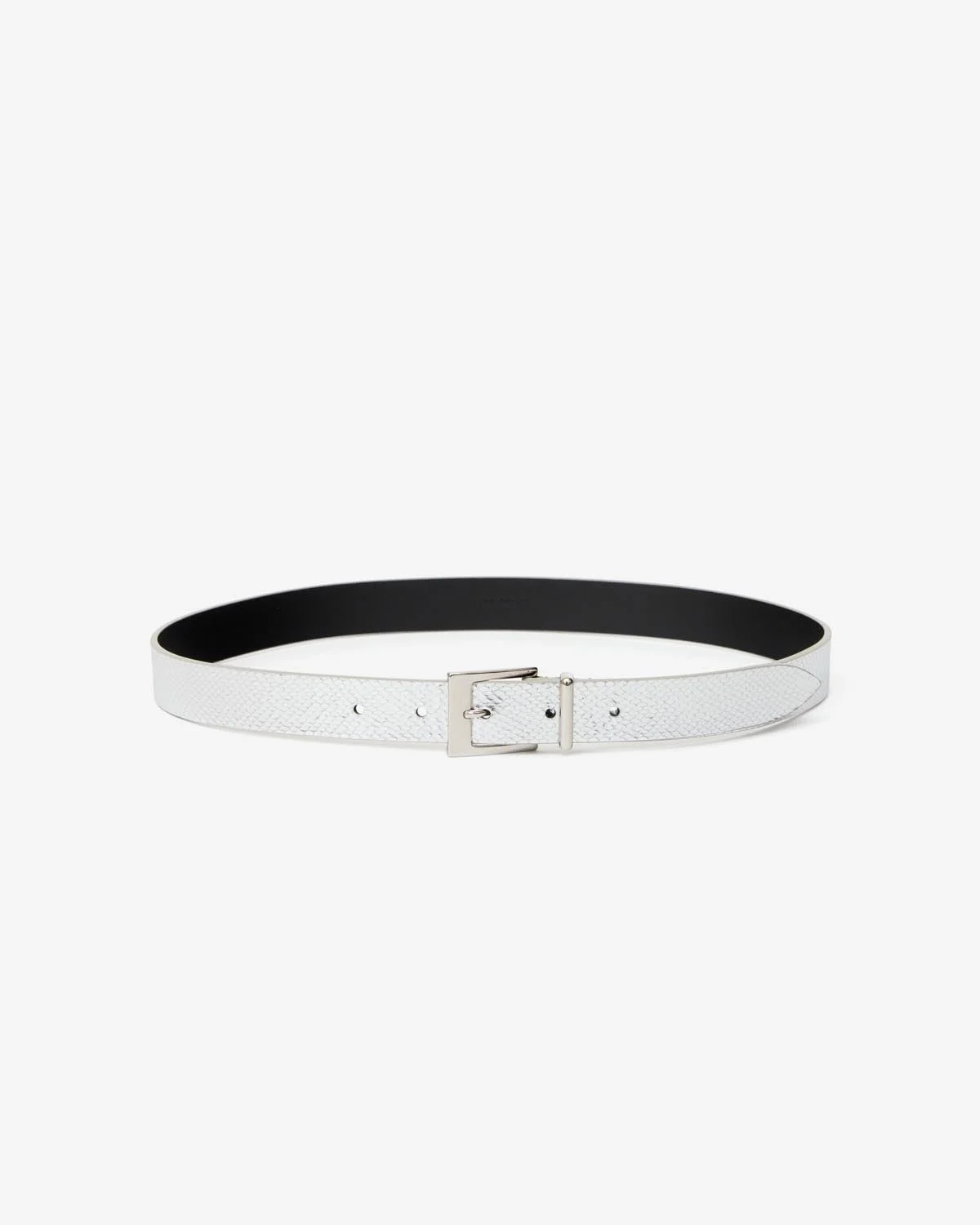 90% Calfskin leather, 10% Zama Silver metallic leather belt Logo Python print Adjustable clasp Width: 2.5 cm
