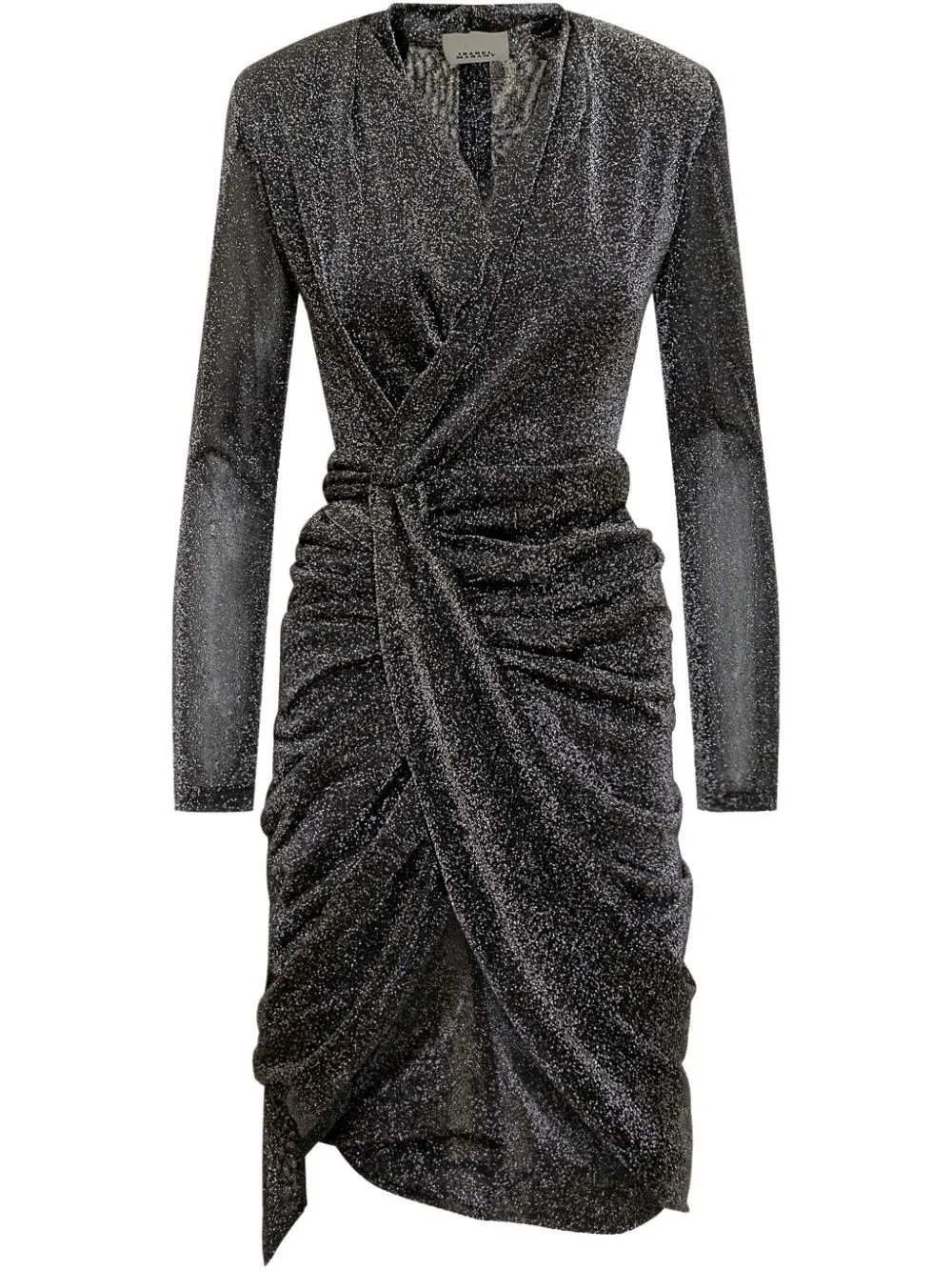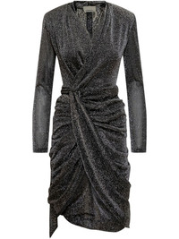 Cleora dress Highlights - Black - Concealed rear zip fastening - Wraparound style - Lurex detailing - Draped detailing Imported Composition Ramie 80%, Polyester 20% SIZE & FIT Measurement SLEEVE LENGTH 25.19 in(64 cm) HIPS 36.22 in(92 cm) LENGTH 41.33 in(105 cm) WAIST 28.34 in(72 cm)