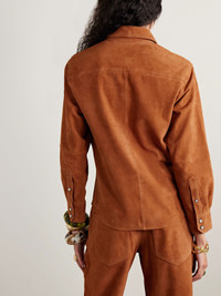 Isabel Marant has a penchant for Western-inspired styles and this shirt is a perfect example of that. Made from supple suede, it has a slim fit traced with tonal topstitching and two buttoned chest pockets. The curved hem looks just as nicely tucked into jeans as it does left draped over a skirt. Size & Fit - Fits true to size, take your normal size - Designed for a slim fit - Short in the sleeves - Supple, slightly stretchy suede - Model is 175cm/ 5'9" and is wearing a FR 36 Details & Care - Brown suede - Snap fastenings through front - 100% suede (Goat); pocket lining: 100% cotton - Unlined - Specialist clean