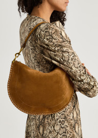 Info & Care Isabel Marant;suede shoulder bag Detachable top handle, detachable adjustable shoulder strap,;debossed designer stamp, woven leather trim, internal card slot, fully lined Zip-fastening across top Size & Fit Width: 12.5 inches/ 32cm Height: 9 inches/ 23cm Depth: 0.25 inches/ 0.5cm Top handle drop: 8 inches/ 20cm Min. shoulder strap drop: 19 inches/ 48cm Max. shoulder strap drop: 22 inches/ 56cm
