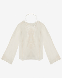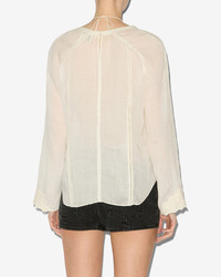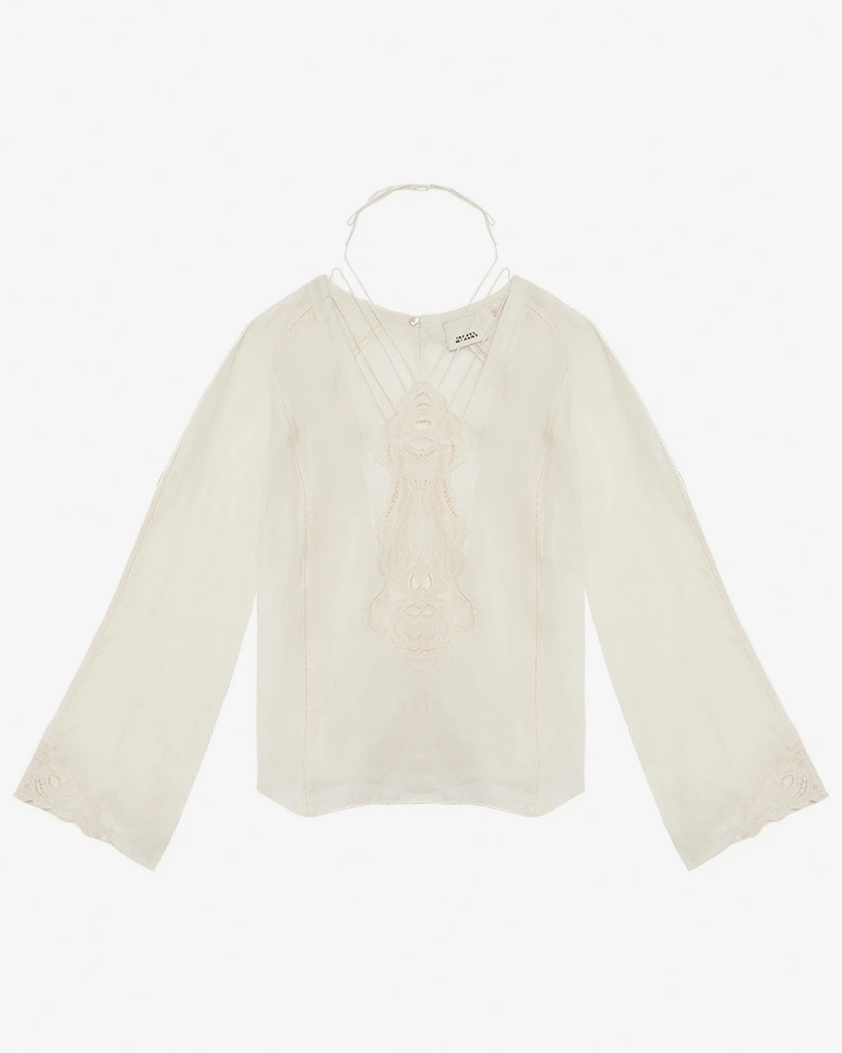 Embroidered ramie blouse Low-cut V-neckline Embroidered neckline yoke Neck ties Done up at the neck with a buttoned slit Long flared raglan sleeves Embroidered cuffs Rounded hem Straight cut Style: HT0629FAC2J08I23EC LUNA 100% ramie