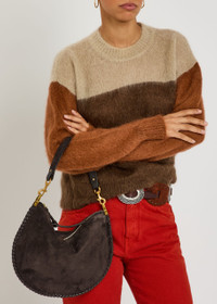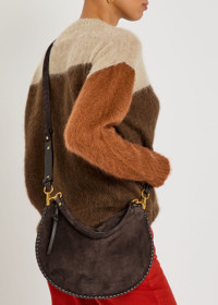 Info & Care Isabel Marant suede shoulder bag; Detachable top handle, detachable adjustable leather shoulder strap, debossed logo at front, leather whipstitch trim, designer-engraved hardware, internal card slot, fully lined Zip fastening across the top Size & Fit Width: 12.5 inches/ 32cm Height: 9.25 inches/ 23.5cm Depth: 0.25 inches/ 1cm Top handle drop: 8 inches/ 20.5cm Min. shoulder strap: 20 inches/ 51cm Max. shoulder strap drop: 21.5 inches/ 54.5cm