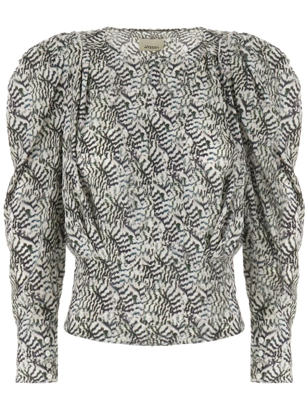 Zarga blouse Highlights - Ecru/multicolour - Stretch-silk - All-over graphic print - Round neck - Mutton sleeves Imported Composition Silk 91%, Elastane 9% SIZE & FIT FittingInformation Designed for a loose fit at the chest with a close fit over the waist and hips Made from a lightweight stretch fabric, this piece offers elasticity and flexibility when worn