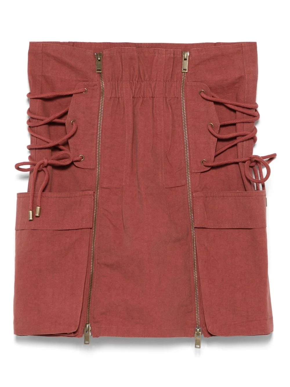 Iteli mini skirt Highlights - Auburn brown - Front zip fastening - Side tie fastening - Two side flap pockets - Straight hem Imported Composition Lining: Cotton 100% Outer: Cotton 100% SIZE & FIT Model measurements Height 5 ft 10 in(1.78 m) Bust/Chest 33.46 in(85 cm) Hips 36.22 in(92 cm) Waist 23.22 in(59 cm) FittingInformation This mini-length skirt is intended to be worn high on the waist The partially elasticated waistband offers increased movement and comfort at the waist Made from a midweight non-stretch fabric Washing instructions Machine Wash
