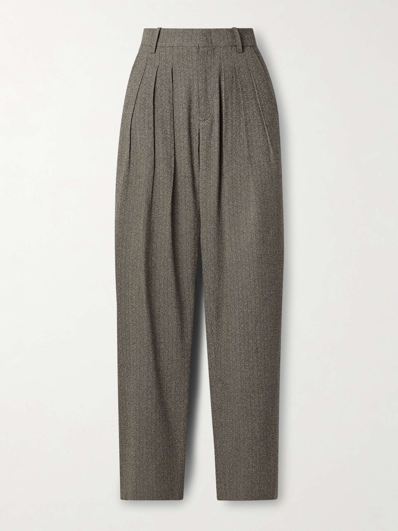 EDITORS'NOTES Isabel Marant's 'Iwena' pants are made from cotton-blend that's woven with tonal-brown and black threads. Smart and sophisticated, they're designed with sharp pleats that enhance the relaxed feel of the tapered legs and have a high rise. Wear yours with chunky knitwear or a crisp collared shirt. SIZE & FIT Model measurements: - Fits true to size, take your normal size - High-rise, cut for a loose fit, tapered at the hem - Mid-weight, non-stretchy fabric - Model is 180cm/ 5’11” and is wearing a FR 36 - Bust: 79cm/ 31” - Waist: 61cm/ 24” - Hip: 89cm/ 35” DETAILS & CARE - Tonal-brown and black cotton-blend - Concealed button, hook and zip fastening at front - 59% cotton, 41% viscose; pocket lining: 100% cotton - Dry clean