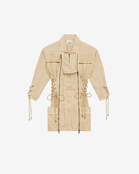 Short laced cotton dress Shirt collar Zippers in front Zippered chest pockets 3/4 sleeves Laced cuffs Side laces with strings and eyelets Gusseted pockets on the sides Fitted cut Style: RO0754FAC2G03I23EC IZARRA 100% cotton