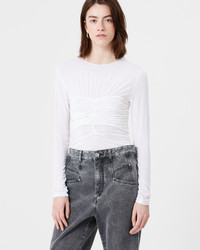 Jersey top with long sleeves Crew neck Bustier illusion effect The model is 177cm / 5'10" tall and wears a size FR 36 Reference: HT2378-22A029I JALILA 92% Viscose, 8% Elastane FITTING ADVICE Fits true to size