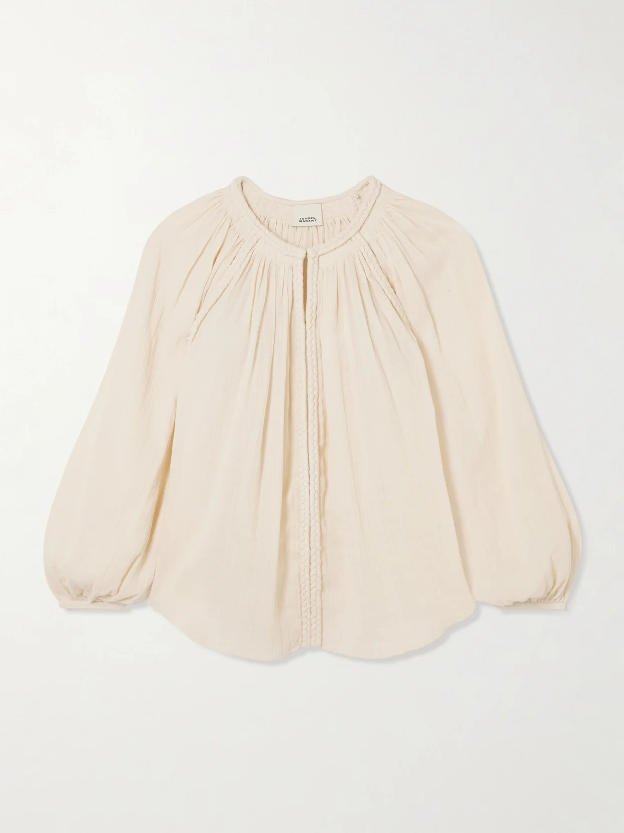 Jenna Frayed Braided Gathered Cotton-gauze Blouse