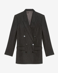 Striped wool blend suit jacket Italian suit collar Structured padded shoulders Long sleeves Straight buttoned cuffs Chest pocket Flap pockets Buttoned crossover front Satin lining Straight cut Style: VE0538FCC3F01I02AN JEVIMA 40% wool, 22% polyester, 14% viscose, 13% polyamide, 9% cashmere, 2% elastane