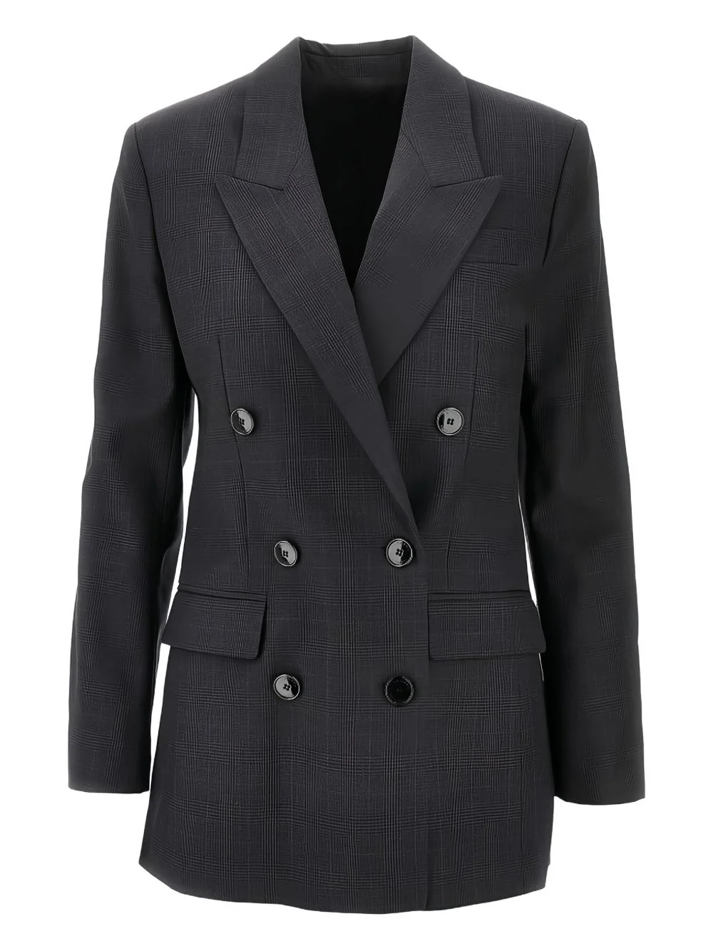 double-breasted checked jacket Highlights - Charcoal grey - Checked pattern - Double-breasted button closure - Peak lapels - Flap pockets - Button detailing Imported Composition Virgin Wool 100% Washing instructions Read Manufacturer Guidelines