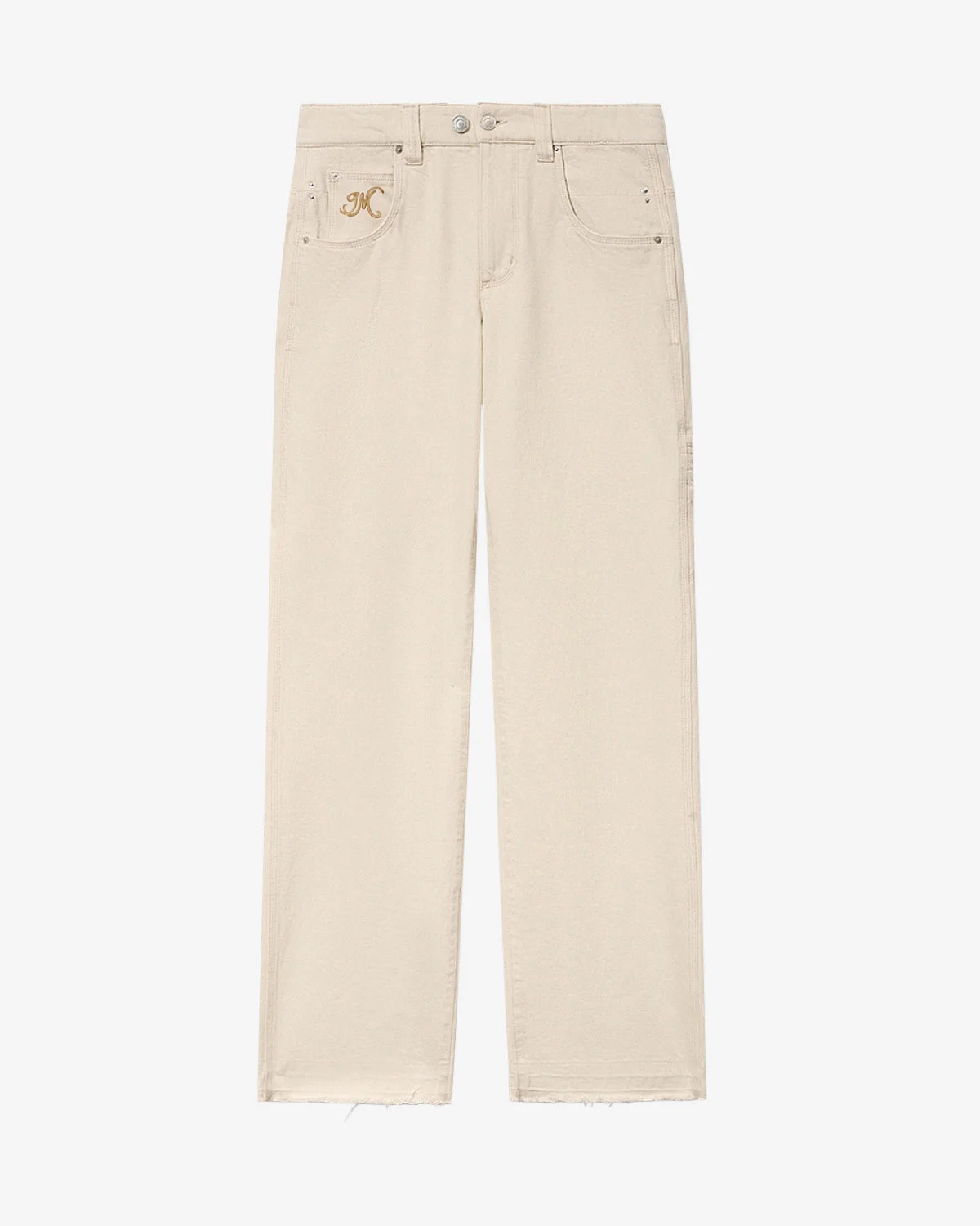 5-pocket topstitched organic cotton denim jeans with rivets Fitted waistband with loops Done up with two engraved metal buttons and a hidden zipper Contrasting "IM" embroidery inside the right pocket Medium-rise waist and straight legs Style: PA0625FAD1H01I23EC JEYDA 100% cotton (1) Care & Sustainability Machine wash on a gentle cycle, inside out and at a maximum temperature of 30°C For more details, see the instructions on the composition label the history and environmental impact of this product
