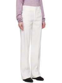 Plain-woven slubbed stretch hemp- and viscose-blend trousers. · Low-rise · Four-pocket styling · Zip-fly · Central crease at front and back legs · Flared cuffs · Unfinished hem Supplier color: White