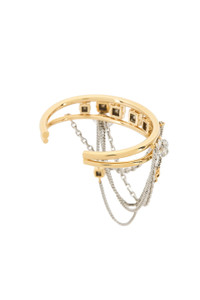 - Gold-tone metal bangle with draped chains and clear crystals - Open structure design - Measures approx 2.5" in diameter - Revolve Style No. IMAR-WL131 - Manufacturer Style No. 25HBR0217FA-C4B07B
