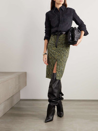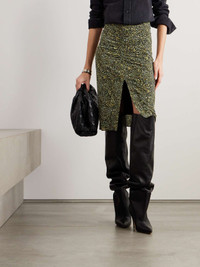EDITORS'NOTES Isabel Marant's 'Joella' midi skirt is made from soft stretch-jersey that's printed with a dizzying amount of geometric motifs. It's ruched through the front to accentuate the close fit and has a generous split. SIZE & FIT - Fits true to size, however those who are between sizes should take the smaller size - Falls below the knee, designed to be worn at the waist - Lightweight, stretchy fabric - Model is 177cm/ 5'10" and is wearing a FR 34 DETAILS & CARE - Multicolored stretch-jersey - Concealed zip fastening along back - 92% viscose, 8% elastane - Dry clean