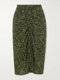 Joella ruched printed stretch-jersey midi skirt