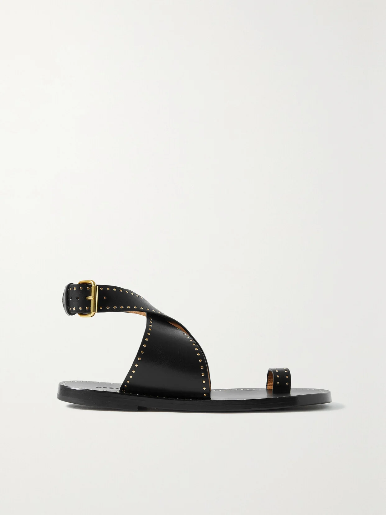 Isabel Marant offers up a very chic French interpretation of a classic Roman sandal. This 'Jools' pair is made from supple black leather and has dainty gold studs. Wear yours with everything from dresses to cropped jeans.