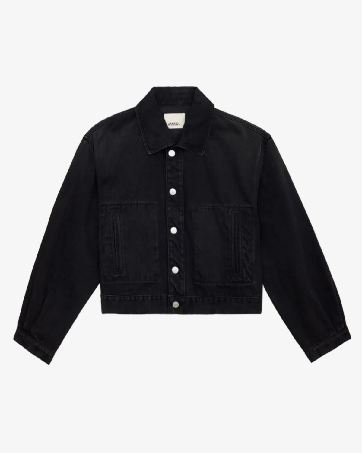 Denim jacket Shirt collar Long sleeves Straight buttoned cuffs Buttoned front Zippered pockets on the front Waistband with buttoned tabs Leather label with an embossed "Isabel Marant" logo Cropped cut Style: VE0451FAB1H04I02FK JOSEPHINE 100% cotton