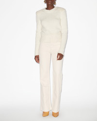 Sweater in plain-colored fluffy knit Round neckline Structured padded shoulders Long sleeves Ribbed finishes Straight cut Style: PU0503FA-B3L05I KALO 29% acrylic, 29% alpaca, 21% cotton, 21% polyamide
