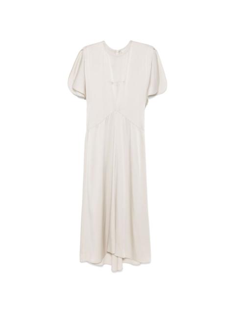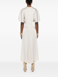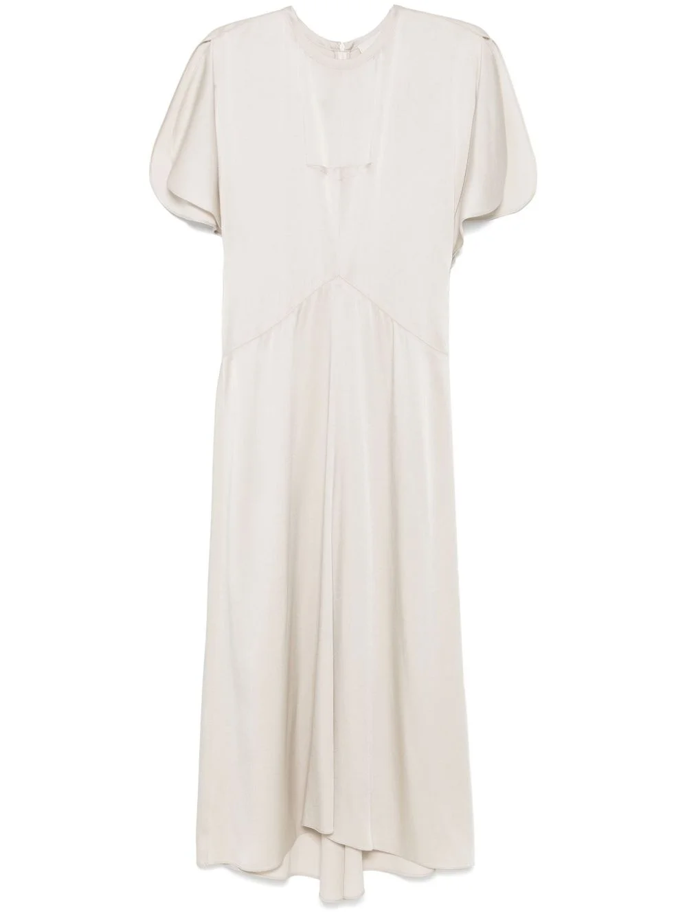 Keany midi dress Highlights - Light beige - Concealed side zip fastening - Round neck - Flutter sleeves - High-low hem Imported Composition Viscose 54%, Acetate 46% SIZE & FIT Model measurements Height 5 ft 10 in(1.77 m) Bust/Chest 29.92 in(76 cm) Hips 34.25 in(87 cm) Waist 23.62 in(60 cm) FittingInformation Designed for a slim fit that sits just away from the body offering a close yet comfortable fit Made from a midweight non-stretch fabric Washing instructions Dry Clean Only
