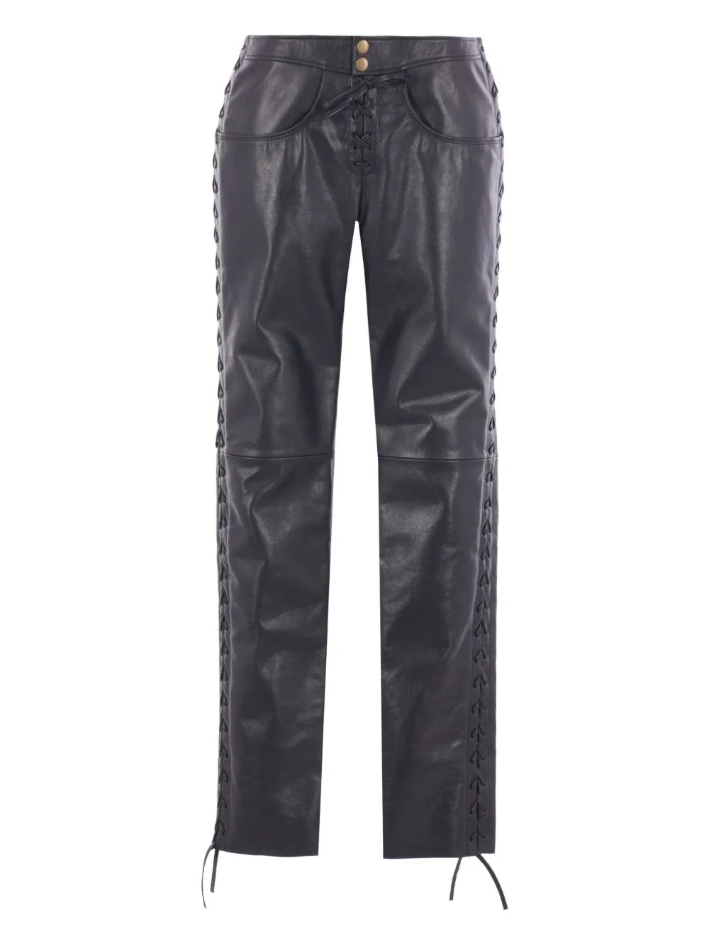 lace-up leather straight trousers