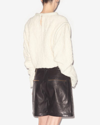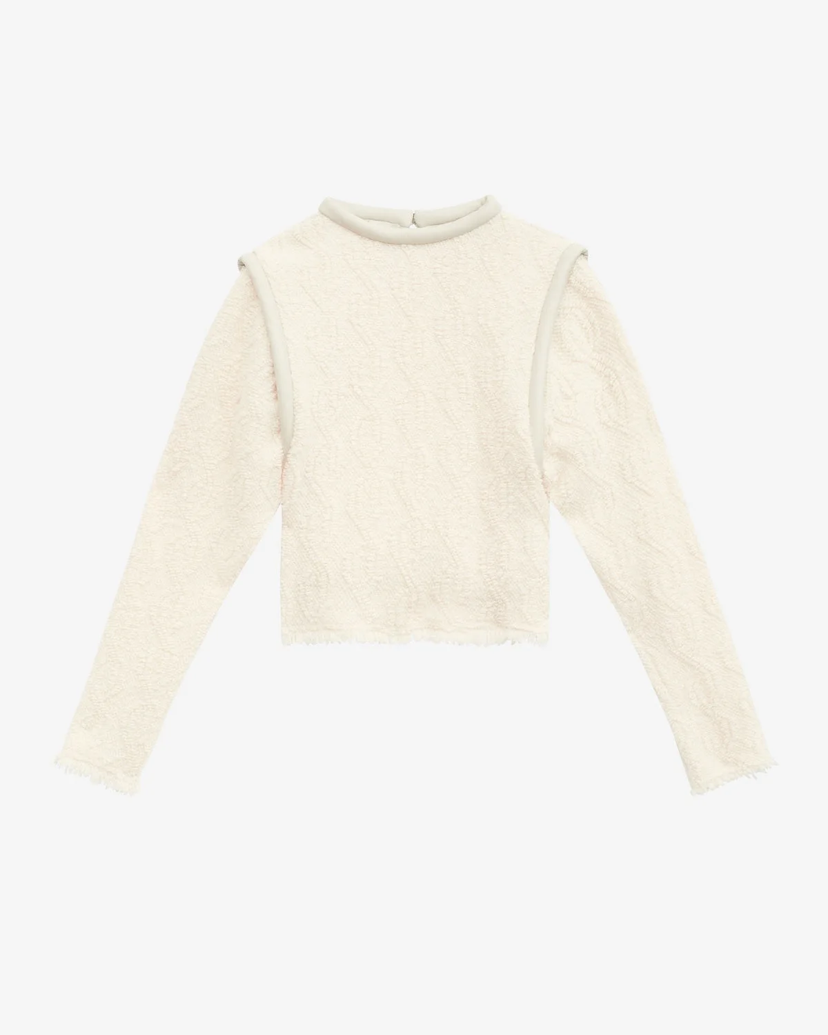 Long sleeve top in Cowens Round, leather style padded collar Leather style padded armholes Long sleeves Raw-edge finishes Done up on the neck with a hook Straight cut Style: HT0482FA-B3E04I LADIVA 54% wool, 30% acrylic, 8% polyester, 6% polyamide, 2% other fibers