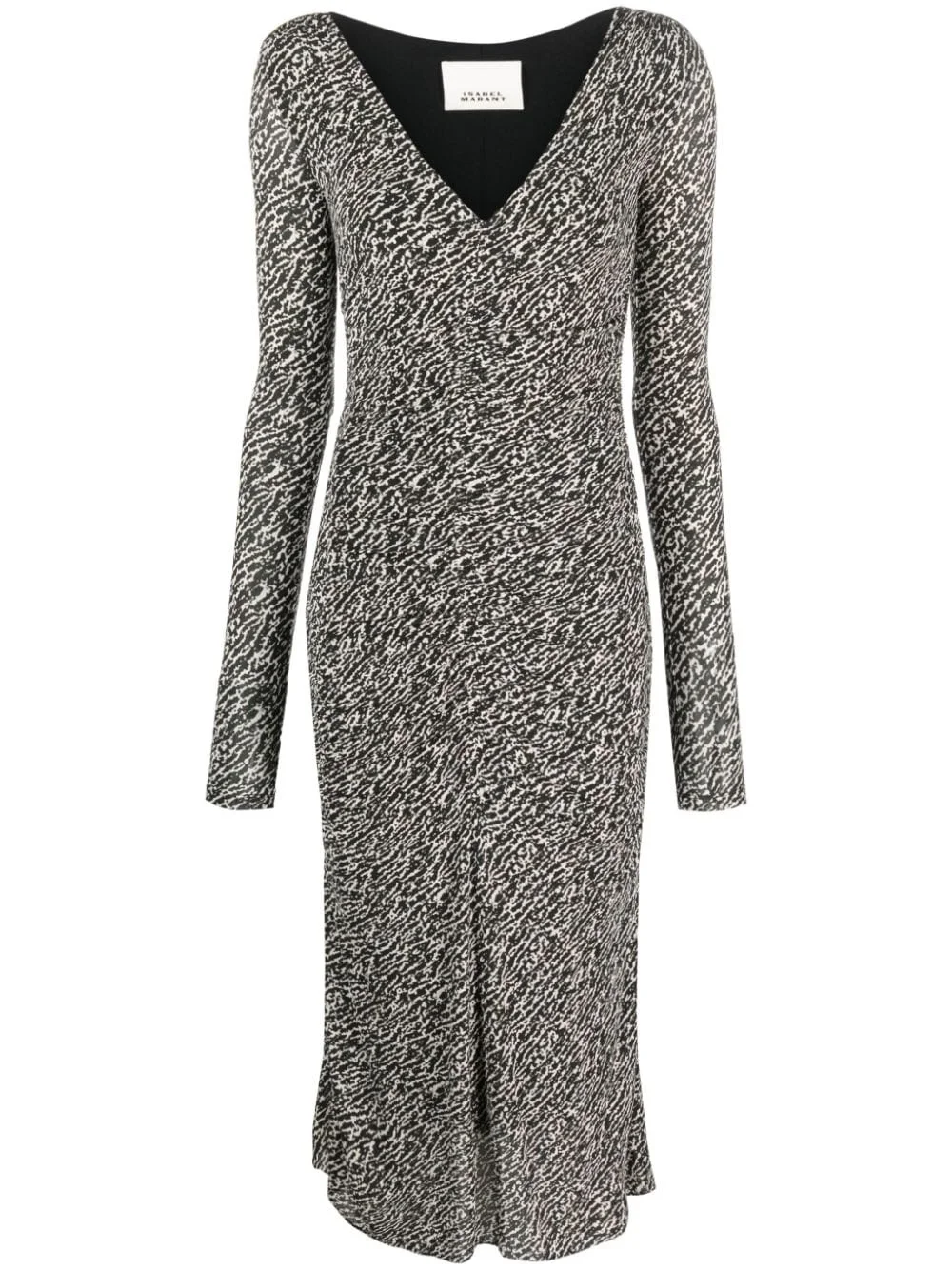 Laly abstract-pattern midi dress Highlights - Black/white - Stretch-design - Abstract pattern print - V-neck - Long sleeves - Ruched bodice - Fitted waistline - Calf-length Imported Composition Outer: Viscose 92%, Spandex/Elastane 8% Lining: Viscose 92%, Spandex/Elastane 8% SIZE & FIT Model measurements Height 5 ft 10 in(1.78 m) Bust/Chest 31.49 in(80 cm) Hips 36.22 in(92 cm) Waist 25.59 in(65 cm) Measurement HIPS 34.64 in(88 cm) LENGTH 46.06 in(117 cm) WAIST 25.19 in(64 cm) FittingInformation Designed for a slim fit that sits just away from the body offering a close yet comfortable fit Made from a midweight stretch fabric, this piece offers elasticity and flexibility when worn This piece fits true to size – take your usual size Washing instructions Hand Wash