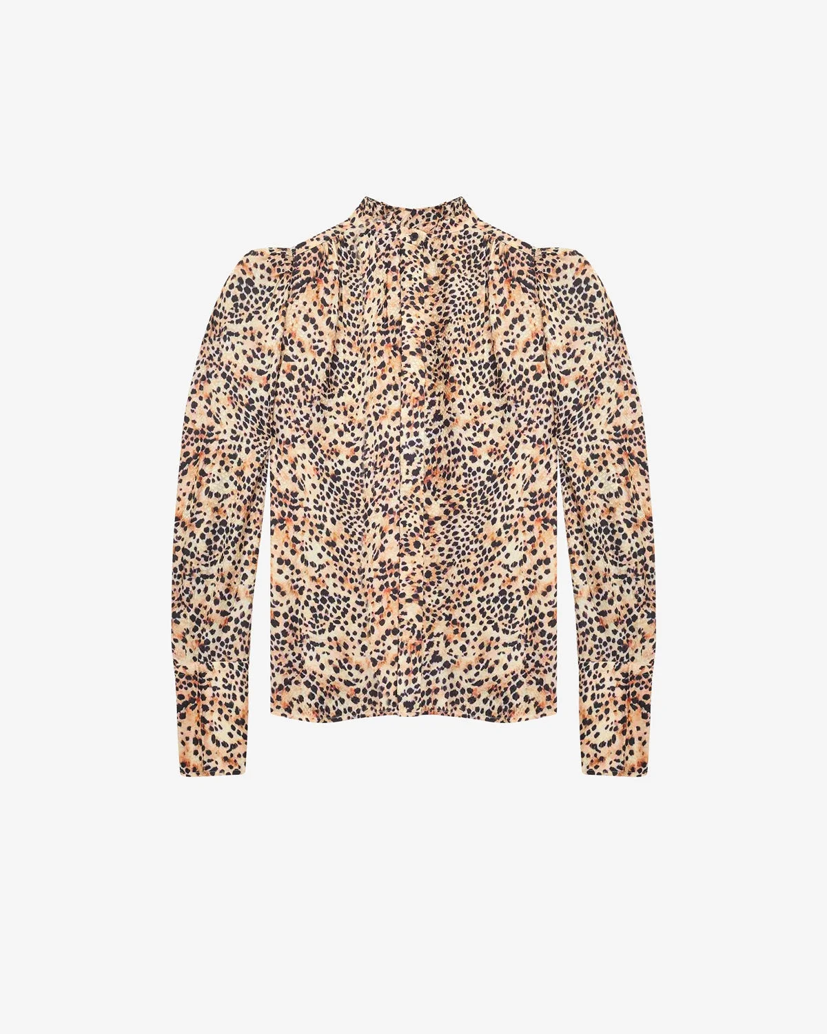 Printed flowing blouse Round collar with ruffled finishes Hidden buttons Structured padded shoulders Long blouse style sleeves Straight cuffs Straight and flowing cut Style: HT0493FA-B3J05I LAMIA 65% viscose, 35% silk