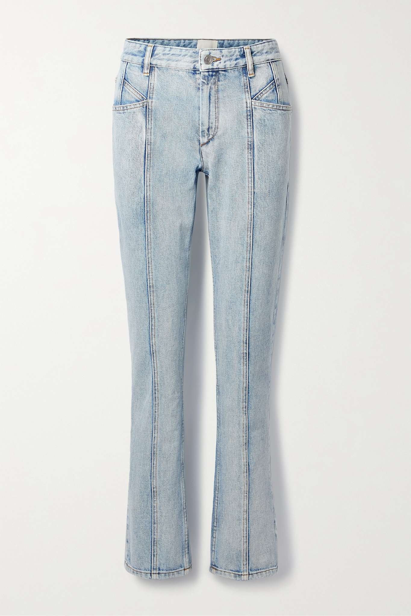 EDITORS'NOTES Isabel Marant's 'Laora' jeans have a directional moto feel, thanks to the acid wash and vertical seams running along the front. They're designed with a mid-rise waist and fit slim through the legs. Wear yours with a printed T-shirt or blouse. SIZE & FIT - Fits true to size, take your normal size - Mid-rise, cut for a for a slim fit - Mid-weight, non-stretchy fabric - Size FR 36 jeans have an inside leg of 31.5”/ 80cm - Model is 180cm/ 5’11” and is wearing a FR 36 DETAILS & CARE - Light-blue denim - Button and concealed zip fastening at front - 100% cotton - Machine wash