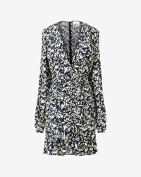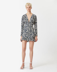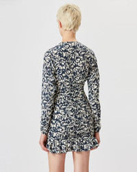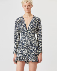 Printed silk short dress with long sleeves Front ruffles Reference: RO0058FA-A1J02I LARA 91% Silk, 9% Elastane FITTING ADVICE Fits true to size The model is wearing a size FR 38 and she is 1m77 (5'9")