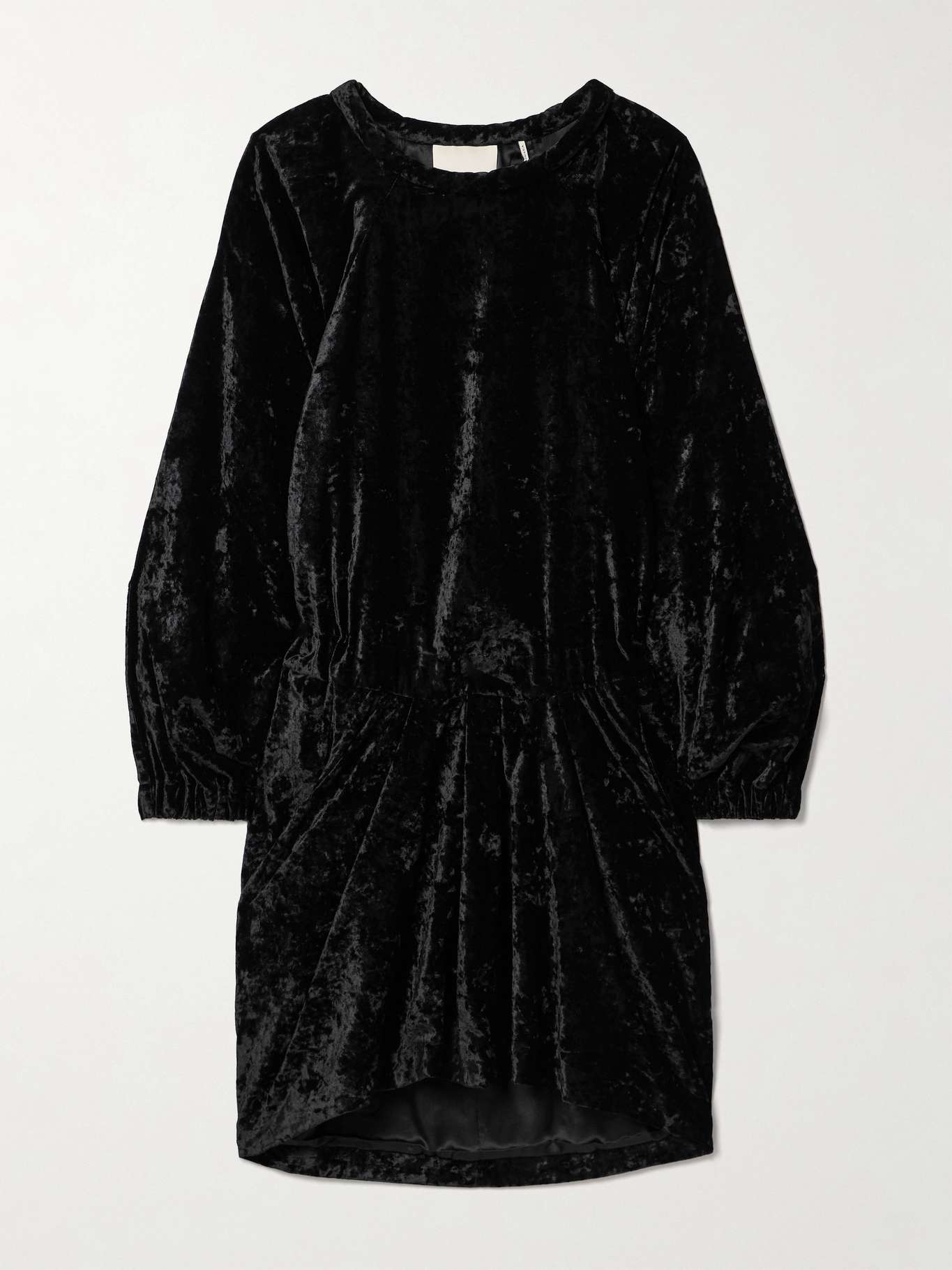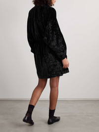 Isabel Marant's 'Lassie' dress is made from crushed-velvet that has a unique texture. It has practical side pockets and an elasticated waist that cinches the relaxed shape. Wear yours with ballet flats, switching to knee boots in the cooler months. Size & Fit - Fits true to size, take your normal size - Designed for a loose fit - Elasticated at the waist for a flexible fit - Dropped waist - Mid-weight, non-stretchy fabric - Model is 175cm/ 5'9" and is wearing a FR 36 Model measurements: - Bust: 81cm/ 32" - Waist: 65cm/ 26" - Hip: 90cm/ 35" Details & Care - Black crushed-velvet - Slips on - 100% polyester; lining: 100% silk - Hand wash or dry clean