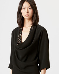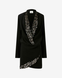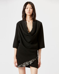 Asymmetrical sequin dress with long sleeves Low neckline Hand embroidery V neck Reference: RO0068FA-A1J29I LAZELI 71% Acetate, 29% Polyester FITTING ADVICE Fits true to size The model is wearing a size FR 38 and she is 1m77 (5'9")