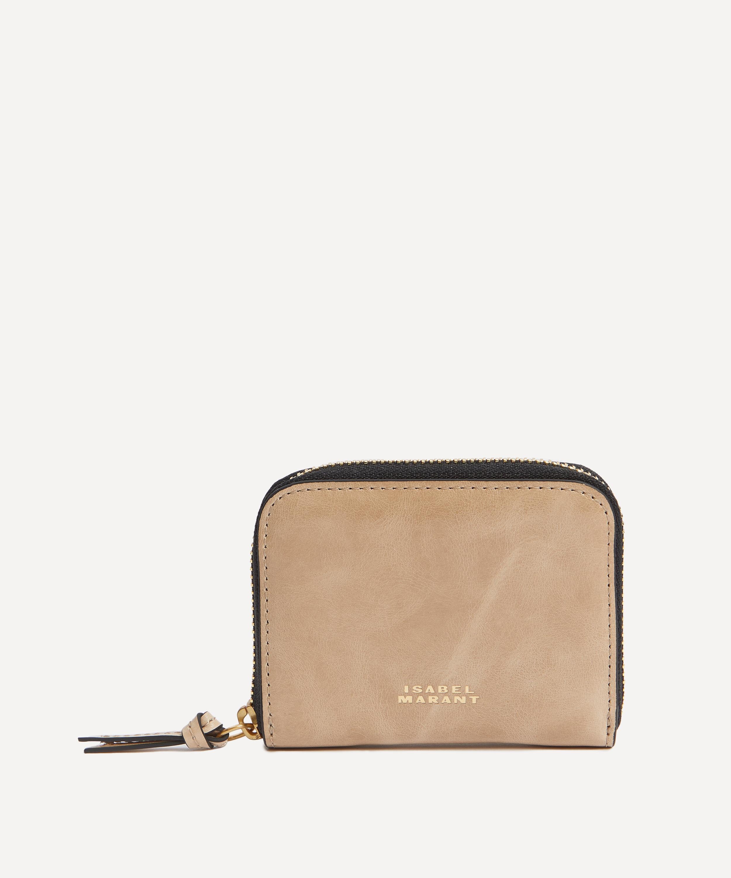 DETAILS Wallet Shiny leather Zip closure Internal card slots Internal zipped coin compartment Gold-tone brand logo to front COMPOSITION & SIZE 100% Calfskin Leather H: 9.5cm, W: 11.5cm, D: 2.5cm