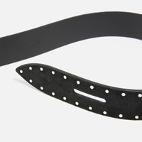 Adding subtle sparkle, Isabel Marant’s Lecce belt lends itself to the party season. It is made from smooth leather embellished with crystals and features a loop fastening to effortlessly add dimension at the waist. Wrap around any loose silhouette or style it with your best minimal dresses. Style Notes - Isabel Marant Lecce belt - Black nubuck leather - 100% leather - Crystal embellishments - Made in Italy Size & Fit - Loop fastening - Belt width: 3cm