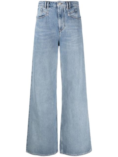 Lemony wide-leg jeans ISABEL MARANT’s penchant for exaggerated silhouettes is echoed in the design of these Lemony jeans. They’re cut from blue denim and fall to a wide-leg design. Highlights - Light blue - Cotton - Denim - Logo patch to the rear - Contrast stitching - Metal eyelet detailing - High-rise - Belt loops - Wide leg - Front button and zip fastening - Two side slit pockets - Two rear patch pockets Imported Composition Outer: Cotton 100% Lining: Polyester 65%, Cotton 35% SIZE & FIT Model measurements Height 5 ft 10 in(1.78 m) Bust/Chest 33.46 in(85 cm) Hips 35.43 in(90 cm) Waist 24.4 in(62 cm) Washing instructions Hand Wash